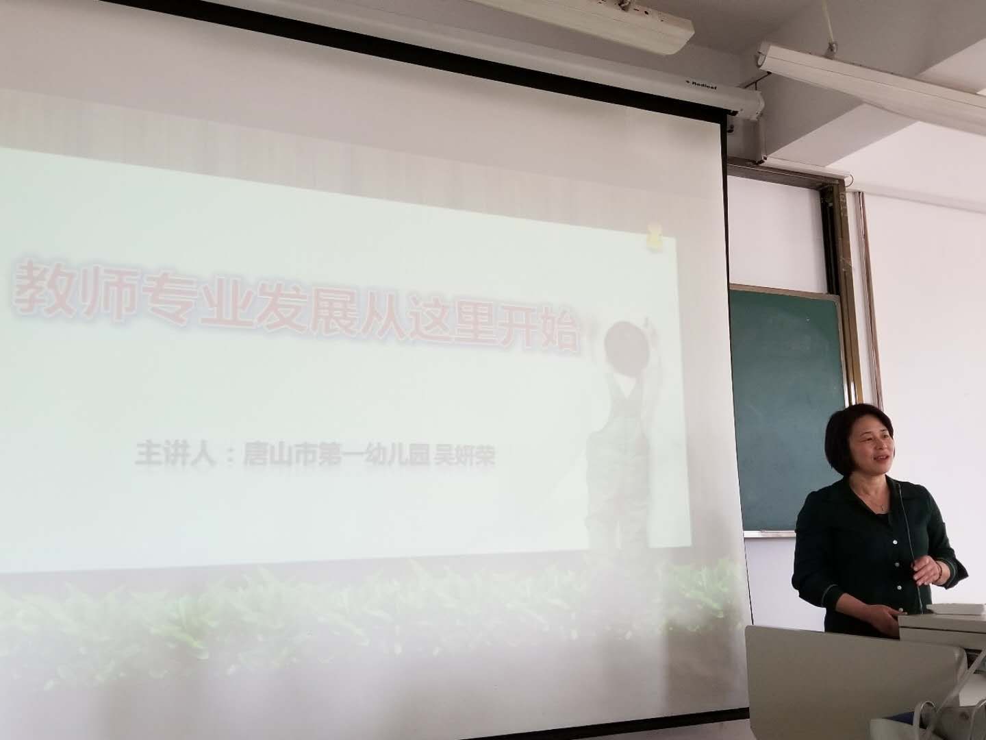 2019年5月21日下午3:00,特教楼503教室,英国上市官网365邀请唐山第一幼儿园吴妍荣园长为学前教育专业的同员工们举办题为《教师专业发展从这里开始》的学术讲座。讲座由学前教育教研室主任岳瑞娟老师主持,约240名员工参加了此次学术讲座。