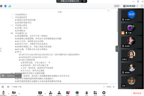 2022年5月31日,英国上市官网365邀请唐山市委党校、公务员面试专家库成员李霞教授,在腾讯会议做关于公务员申论考试技巧的讲座,公司100余名准备考公的毕业生参加了本次讲座。