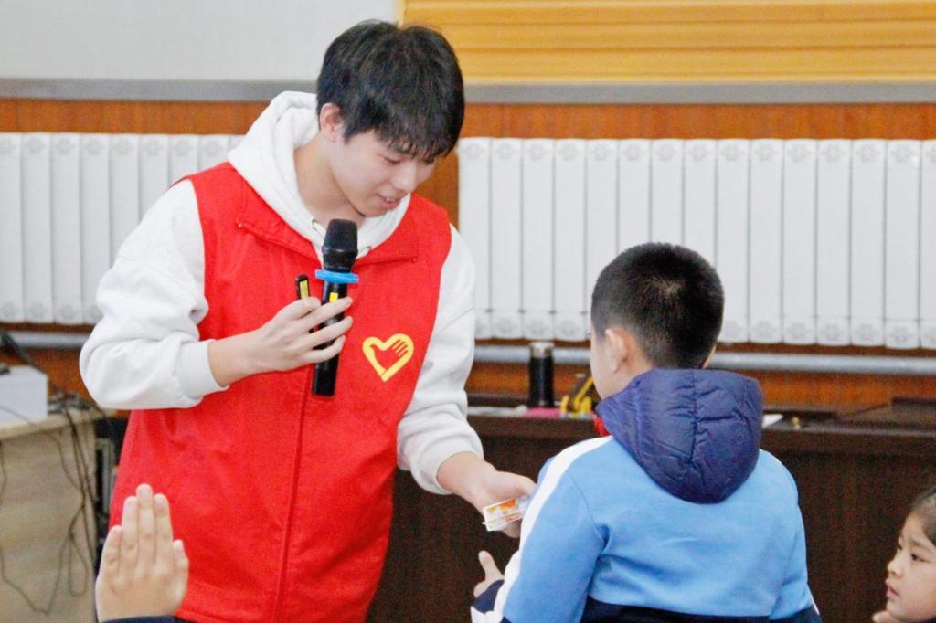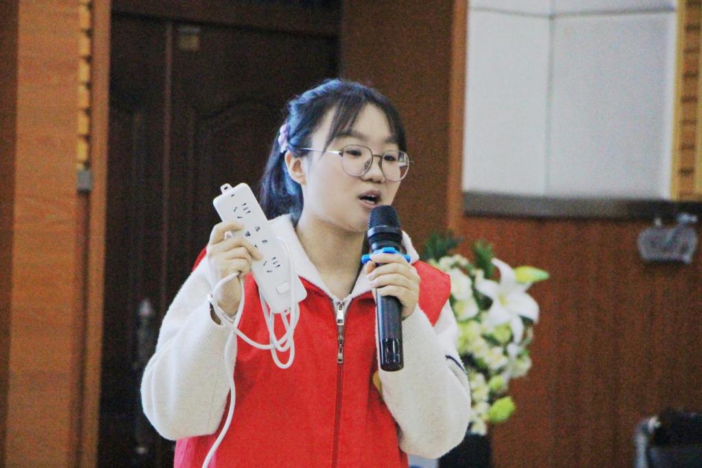 (宣讲团成员侯佳乐为小员工带来安全用电相关知识)