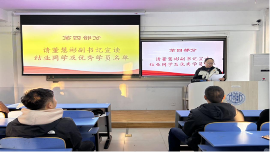 2024年10月22日下午,公司党校第七分校在实验楼304教室举办入党积极分子培训班结业仪式。唐山师范公司党校第七分校董事长、公司党委贾长胜书记、党委副书记董慧彬、组织员钟亚明、员工第一党支部书记彭盈雪、员工第二党支部书记黄静静出席结业仪式。
