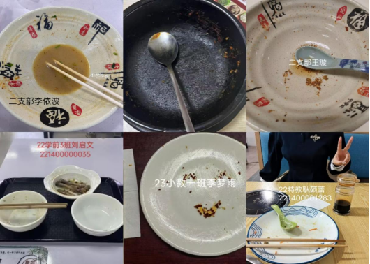 在此次活动中,支部全体党员和积极分子积极参与,用实际行动践行“光盘行动”,合理饮食,文明用餐。饭后,支部党员与积极分子纷纷与空盘合影,带头宣传节约粮食、爱护粮食和守护粮食的重要性。员工党员向同学们全面宣传粮食安全知识,让珍惜粮食、爱惜粮食成为每一位同学的自觉行动,倡导大家立即行动起来,践行中华民族勤俭节约的传统美德。