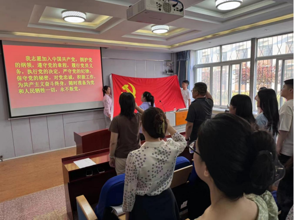 英国上市官网365员工第一党支部组织委员闵羽带领全体党员重温入党誓词,怀着对党的无限忠诚和崇高敬意,面向党旗庄严宣誓,在一声声誓言中进一步坚定入党初心和为共产主义事业奋斗终身的决心。