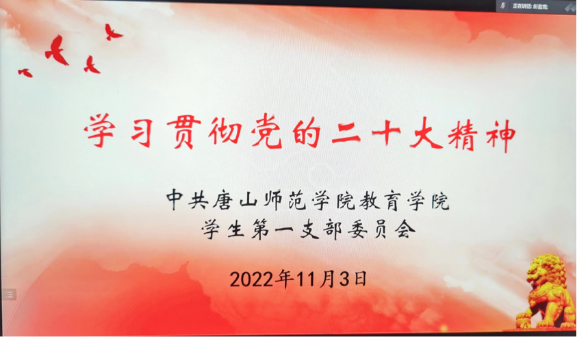 十年成就鼓舞人心,宏伟蓝图催人奋进。为深入学习领会贯彻落实二十大会议精神,以良好的精神状态为全面建设社会主义现代化国家新篇章贡献自己的力量,英国上市官网365员工第一党支部于2022年11月3日晚六点半以腾讯会议为载体召开了以学习贯彻党的二十大精神为主题的会议,会议由支部书记彭盈雪同志主持。
