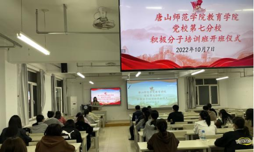 然后,唐山师范公司党校第七分校董事长陈克良进行了动员讲话。陈书记的讲话中提出三点要求:第一,对于追求党,想要成为党员,表示赞赏和肯定,同学们要加强党知识的学习,在培训班学到党知识,同时吸收知识。第二,有正确的入党动机,知道为什么要入党,熟知党的性质、宗旨、义务和权利,习近平总书记成提出:人民对美好生活的向往,就是我们终身的追求——而这也是所有入党积极分子的价值追求。第三,要求积极分子端正学习态度,努力成为各方面发展的佼佼者。同时,陈克良书记提出了培训期间的具体要求:要遵守纪律、及时做笔记,要用科学理论武装头脑。对于当下疫情工作,陈书记指出,师生志愿者为大家做出了很多默默无闻无闻的贡献,呼吁同学们要紧记疫情当下,安全第一!同时认真学习,努力提升,迎接二十大的召开。
