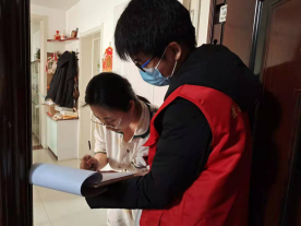 在这天下午,张策与社区工作人员一起去了衡水市景县老年公寓小区挨家挨户的给社区及街道家庭进行疫情的排查工作,一同排查是否有外来人员,是否做过核酸,是否有健康码等等并向其家庭成员普及防控知识,对于一些外来人员他们向其说明原因后,也对其做了详细的登记工作,此外他们也对人群比较密集地区进行了一些有序疏散,对于一些老年人他们则就耐心的为老人激活健康码,并教他们使用。这一段时间可以看出他们跟累,但是他们说心理感觉还是很值得的。