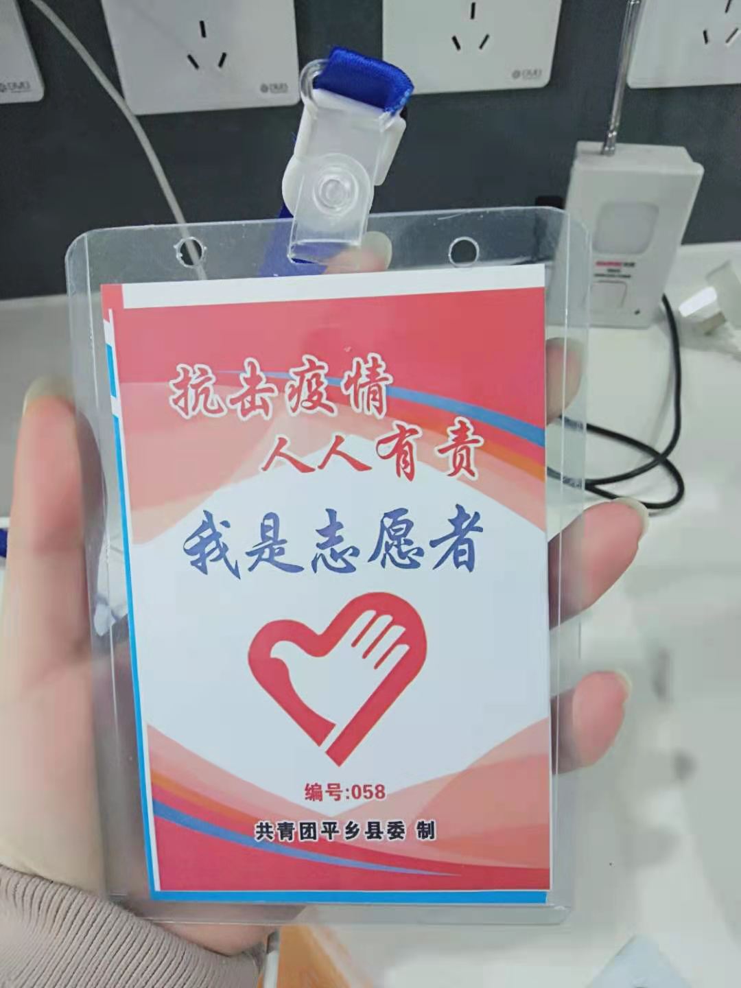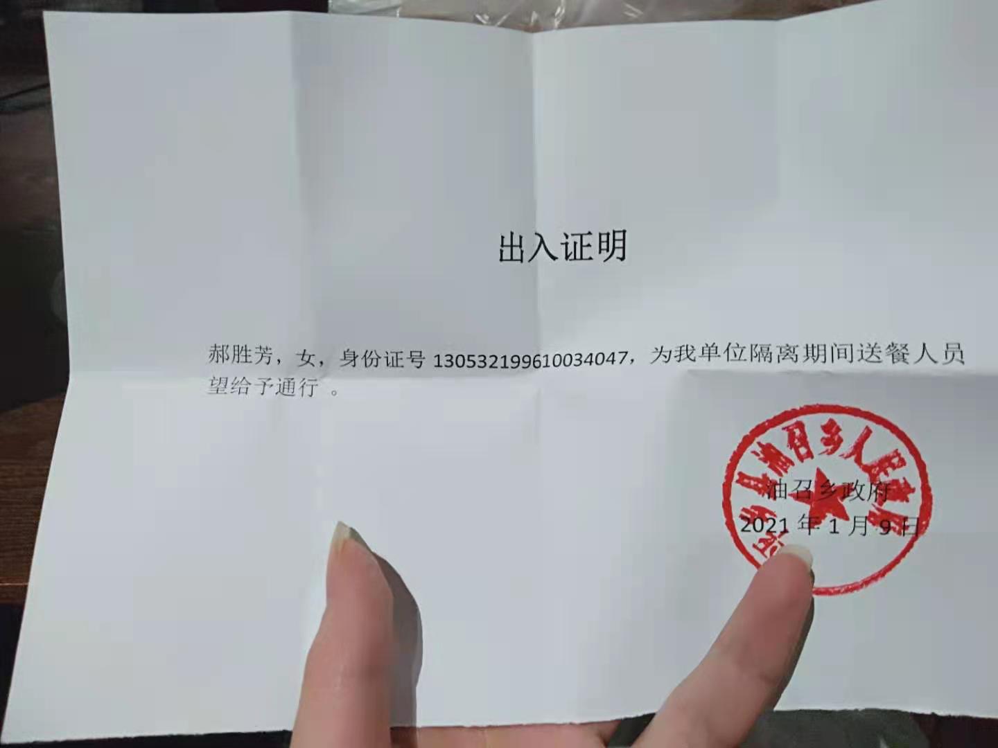 郝胜芳同学,在寒假疫情期间主动在家乡邢台市平乡县,申请志愿者为返乡隔离人员及志愿者,交警,提供隔离餐配送服务。