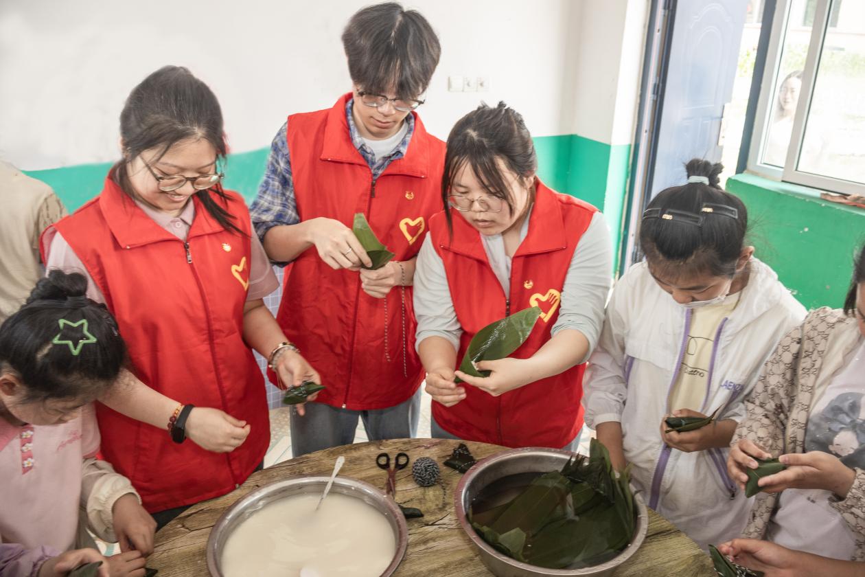 (英国上市官网365小学教育专业员工代表与员工共同包粽子 韩劭宣摄)