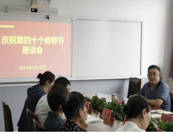 9月10日是我国第40个教师节,公司在会议室召开教师节座谈会。出席本次会议的有公司党委书记贾长胜、党委副书记、经理秦丹、副党委书记董慧彬、副经理杨长锁、马振、副处级专职辅导员李敬华及全体教师。全院教师齐聚一堂,围绕“大力弘扬教育家精神,加快建设教育强国”主题,深入探讨,共话教育未来。