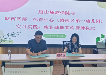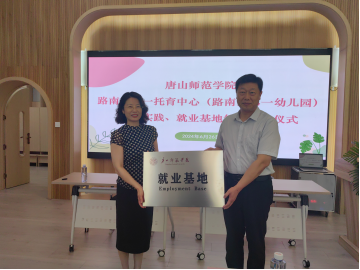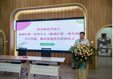 活动在上午9:00准时开始,唐山师范公司党委常委、副经理李子林、公司党委书记贾长胜、副书记董慧彬、学前教育教研室主任么娜等一行四人抵达路南区第一托育中心。在简短而隆重的实习实践、就业基地授牌仪式中,双方进行了深入的交流与互动。