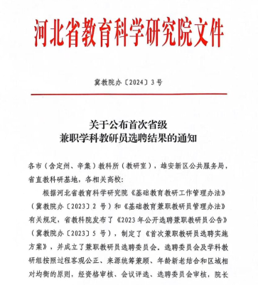 近日,公司教师朱立明博士被评选为河北省小学数学兼职学科教研员。这是河北省首次选聘省级兼职学科教研员。