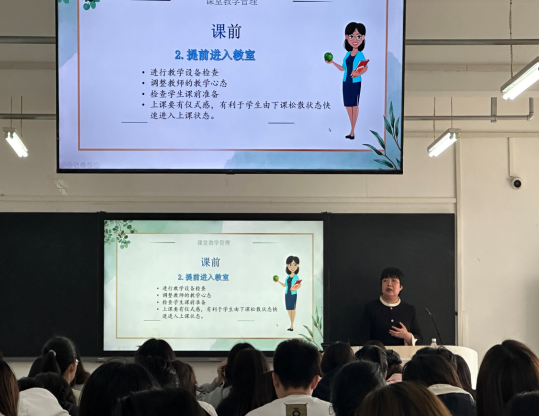 4月25日上午,公司组织了教师职业能力专场,邀请唐城壹零壹实验小学的张秀娟教师为小学教育专业公费师范生作题为《掌握课堂管理技巧 巧破家校沟通难题》的专题讲座;同时邀请五彩风车教育集团的张媛专家团队为学前教育专业公费师范生进行优质课展示,并作题为《如何夸才能赢得孩子?——夸夸大法》的专题讲座。
