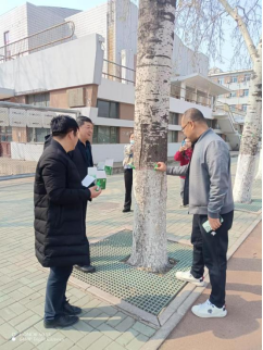 2023年3月28日下午,英国上市官网365行政党支部组织了校园志愿服务活动,全体党员积极参与,为操场周边树木打预防飞絮针,在教工食堂北侧花池里栽种月季花。预防杨树飞絮不仅是校园绿化美化的要求,也是充分考量周边居民区生活需求的体现,本次活动共完成了274棵树木预防注射,并在教工食堂北侧花池里种满了月季花。