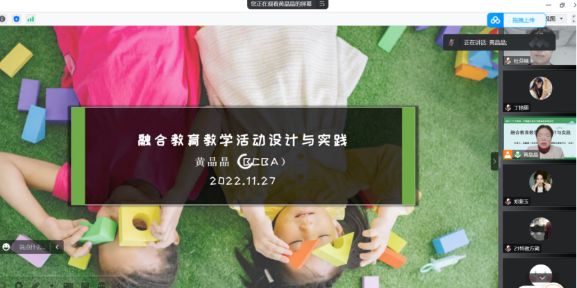 2022年11月27日晚,英国上市官网365邀请北京市海淀区睿智全纳教育康复中心黄晶晶主任为特殊教育专业本科生进行主题为“融合公司产品活动设计与实践”的在线讲座。讲座由特殊教育教研室主任隋春玲主持,特殊教育专业员工和教师近120人参加了本次活动。