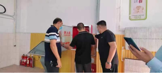 在员工食堂,重点检查了新装的两个消火栓的安装使用情况。查看消火栓内的水枪、水喉、水管,检查了各窗口的灭火器,并对食堂经理提出了安全方面的新要求。