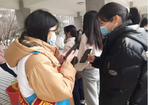 在苦难中磨砺,在奋斗中成长。前行的员工干部、青年志愿者,为了筑牢防疫壁垒,成为了这个乍暖还寒的初春里最美 “逆行者”。他们的面庞虽然青涩,但这份强大,令人动容。面对疫情,我们的同学坚守在岗位的第一线,与白衣天使共同奋斗,撕棉签、贴试剂、查人数、维持秩序、扫码登记……面对细碎而复杂的任务,他们任劳任怨。刘丰硕、李宇轩、李闯、高学梁一直不间断的战斗在抗“疫”一线,2020级应用心理班武艳葳、2018级小学教育班杨梦娇、2018级学前教育班李梦媛主动请缨带领本班员工积极参加核酸检测志愿服务。