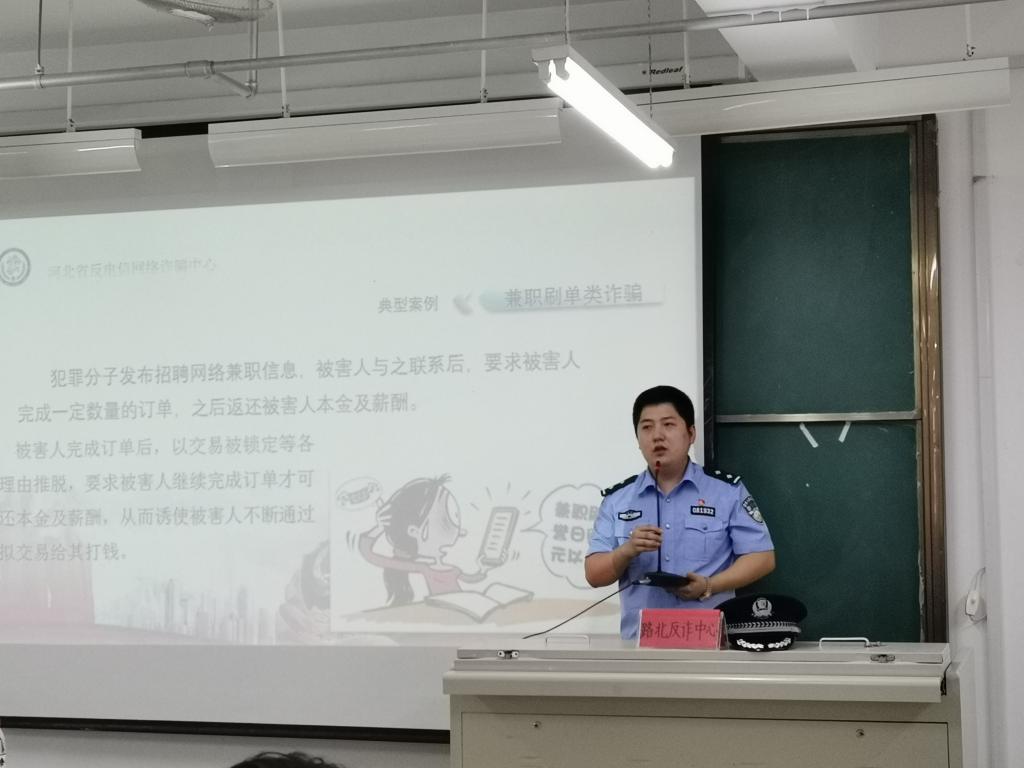 为了使员工熟悉生活中常见的电信诈骗形式,增强员工在生活中遇到诈骗现象灵活应对的意识,提高员工自我预防、自我保护、自我应对、自我逃生的能力。9月11日公司举办了打击新型网络诈骗专题讲座。出席本次活动的有路北公安局刑警大队反诈中心负责人相博铭,路北公安局大里派出所副所长李方方,公司党委书记陈克良,公司党委副书记张颖琳和18级员工代表。