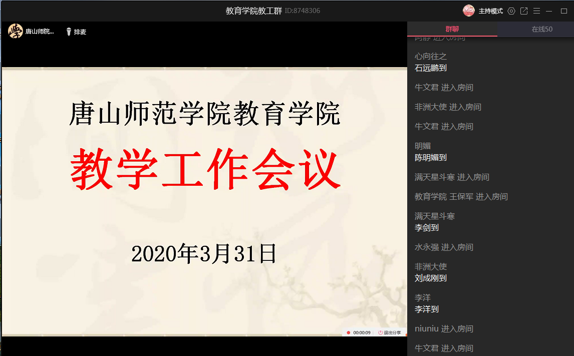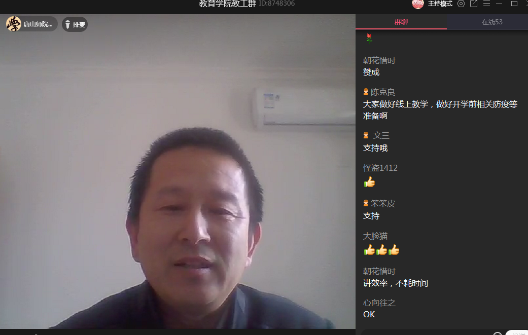 2020年3月31日下午两点半,英国上市官网365利用QQ群召开线上教学工作会议,总结开学以来线上教学工作的开展情况,进一步落实和部署本学期的其他教学工作。公司党委书记陈克良、经理张学鹏、副书记李晓萍、副经理王建国和全体专任教师、辅导员以及党政办公室、教务办公室的老师参加会议。会议由经理张学鹏主持。
