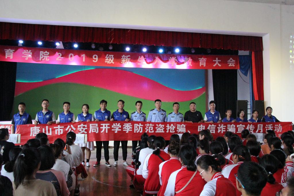 为提升同学们预防网络诈骗的能力,提高同学们网络安全防范意识。8月31日下午,公司在文体馆组织全体大一新生参加“唐山市公安局开学季防范盗抢骗、电信诈骗宣传月活动”主题讲座。讲座邀请唐山市公安局刑警支队侵财犯罪侦查大队的三位警官主讲。