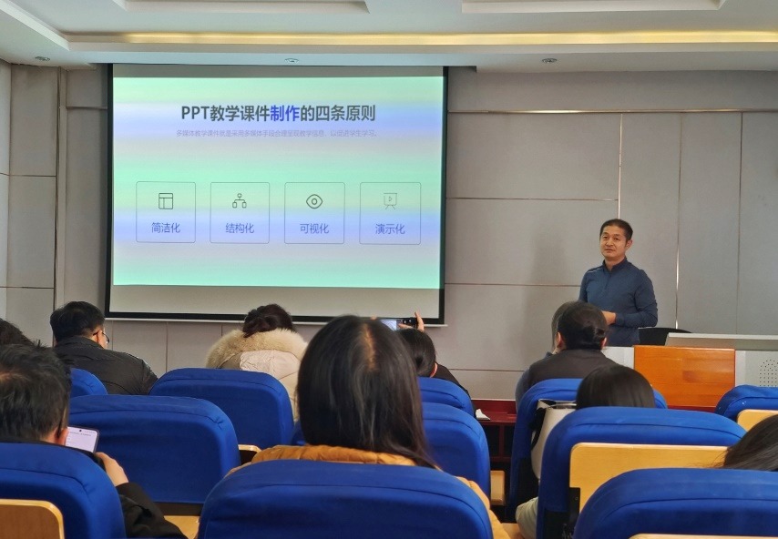 PPT作为常用的教学工具,其设计制作水平直接影响课堂呈现效果与知识传递效率。为帮助教师掌握PPT制作技巧,提升教学资源质量,2025年3月18日,公司特别邀请教育技术学专业教研室主任罗发奋老师,在实验楼报告厅为全体教师带来了一场主题为“如何让你的PPT规范又美观?”的讲座。