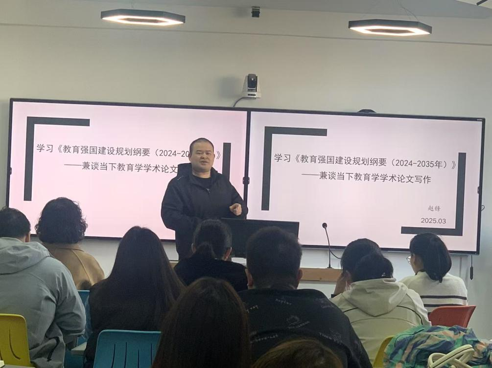 讲座过程中,赵锋博士还就当下教育学学术论文写作的热点问题与参会教师进行了深入交流。他强调了学术论文写作的创新性和实践性,鼓励教师们结合《教育强国建设规划纲要(2024-2035年)》精神,开展具有前瞻性和现实意义的研究工作。参会教师纷纷表示,赵博士的讲解深入浅出,既有理论高度,又有实践指导,对提升自身的学术写作能力具有重要的启发作用。