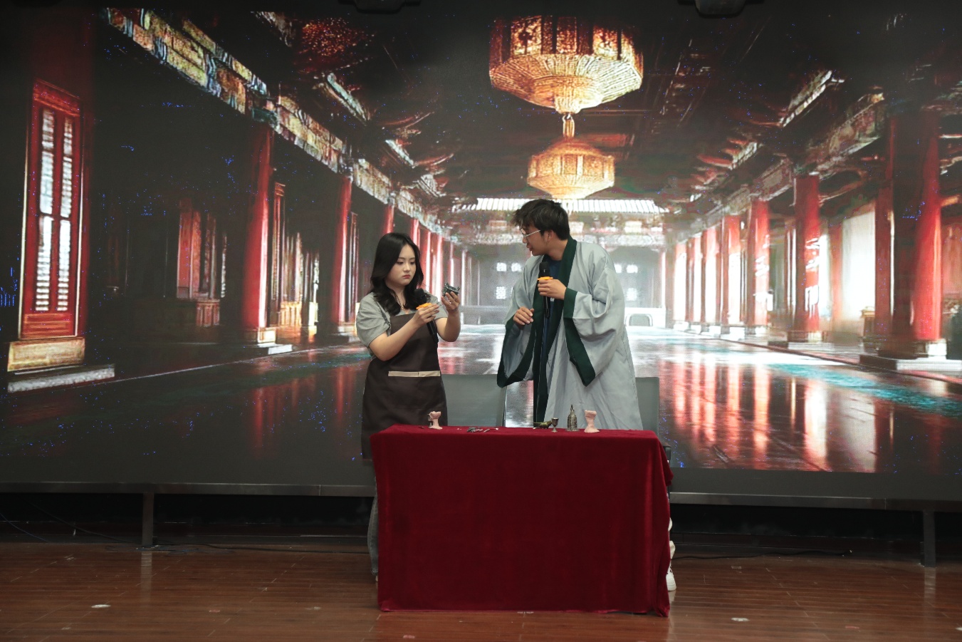 为促进多元文化交流,展现中华语言文化的魅力,近日,英国上市官网365第二届多语种文化节盛大开幕。4月24日多语种戏剧大赛进入决赛。其中齐跃剧社带来中文情景剧《传艺》。齐跃剧社社长卢泓宇、副社长李依诺、齐跃剧社社员和英国上市官网365大一大二部分同学参与此次活动。