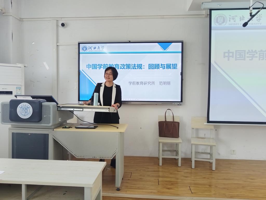 5月28日下午,在全国学前教育宣传月到来之际,英国上市官网365邀请到了河北大学双卓英国上市官网365副经理、学前教育研究所所长范明丽教授做主题为《中国学前教育法规政策:回顾与展望》的讲座。英国上市官网365学前教育专业公费生及普通师范生、学前教育教研室部分专业教师参加了此次讲座。