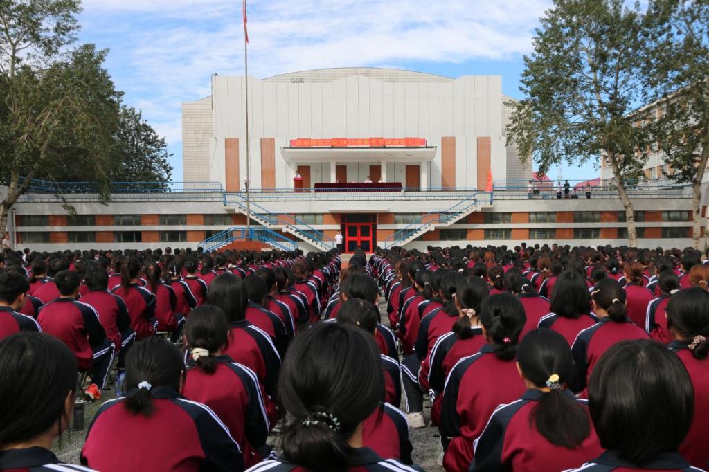 早晨7时10分,新生统一着装,有序进入操场,精神饱满、队列整齐。7时55分,领导嘉宾入席。8时整,大会在庄严的升国旗、奏唱国歌仪式中正式开始,师生肃立行注目礼,国旗冉冉升起,爱国情怀激荡全场。