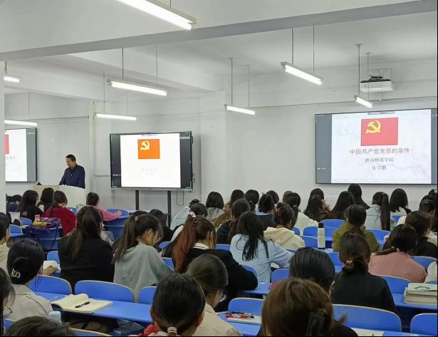 2023年10月13日晚上,为加强对党员发展对象的培养与监督、党员积极分子的队伍建设,提高党员发展对象理论水平和党性修养,从源头上把控好党员质量,公司党委组织了入党积极分子党课培训第三讲。本次培训在实验楼301进行,由教育科学研究所所长张学鹏老师主讲,会议全程井然有序,员工认真听讲、积极配合。
