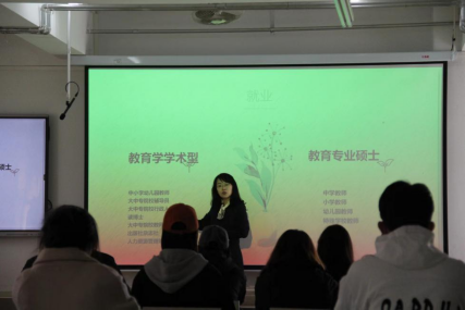 整场讲座在愉快、轻松的氛围下进行。讲座伊始,姜雪老师通过与同学们亲切互动了解了大家的考研方向,介绍了近几年的总体考研情况。姜老师指出目前考研人数再创新高,上线分数提升,教育资源紧张,竞争激烈,同学们更需提升自身能力;同时详细介绍了教育学专业考研需要复习的科目,帮助同学们进行教材分析和选择。在姜雪老师循循善诱的讲解和答疑中,同学们对考研的方向有了更加明确和深刻的思考。