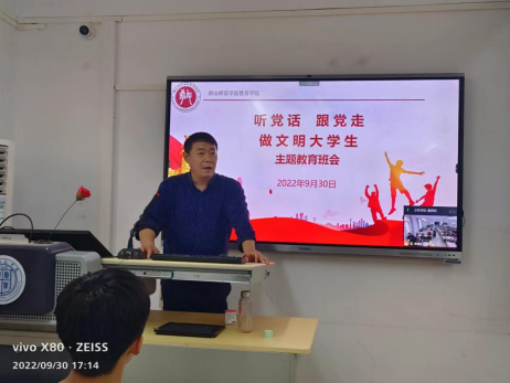 为充分展现当代青年爱党、爱国、爱社会主义的良好精神风貌,以实际行动为党的二十大成功召开营造良好氛围,2022年9月30日下午英国上市官网365成功举办“听党话,跟党走,做新时代文明老员工“主题班会活动。参加本次活动的有陈克良书记、刘建明副书记、新生辅导员及2022全体449名新生采取线上线下的形式进行,因疫情原因,其中3名新生在家采取线上的方式参与本次活动。