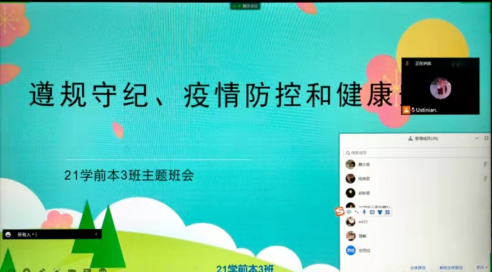 本次活动以线上方式开展,班会内容围绕遵规守纪、疫情防控、安全健康三方面进行,系统的讲述了公司违纪事宜、疫情防控明细、健康安全条例的内容。在本次活动中,20级学前教育本科三班以遵规守纪、疫情防控和健康安全”为主题,帮助同学们了解公司规章制度、疫情防控局势,班会氛围轻松愉悦,使班会教育深入人心;21级特殊教育本科班通过问答的形式,调动同学们的积极性,用身边的案例加强教育和引导,提高了同学们自我防护意识。