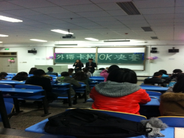 为提高员工学习外语的热情,由公司外语系文艺部举办的外语卡拉OK比赛于11月10日晚7:00在文科第十阶梯教室举行了决赛。全校共有13组选手参加了本次决赛。选手们无论是唱歌水平还是现场表现力都令大家眼前一亮,赞不绝口。
