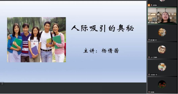 11月2日和3日晚上19:00,英国上市官网365邀请到河北科技师范公司杨倩茜副教授为公司2020、2021、2022级应用心理学、小学教育、学前教育专业的员工进行讲座,讲座主题为“人际吸引的奥秘”,本次讲座的主要内容包括:人际吸引的因素;人际交往的心理效应;人际交往的原则等。
