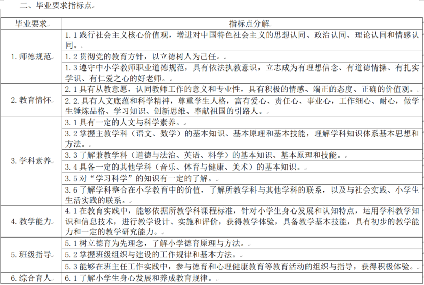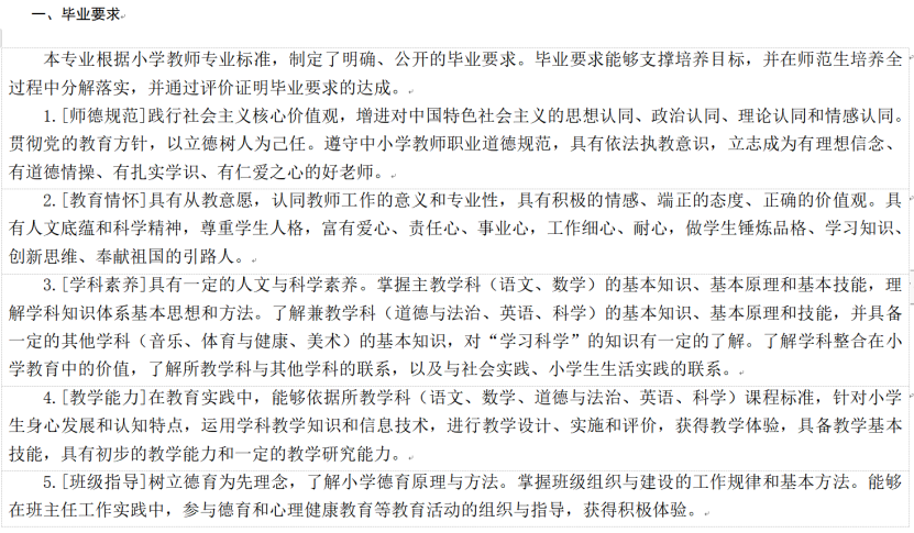 2021级小学教育专业毕业要求