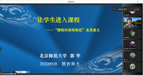 2022年9月28日晚,英国上市官网365组织师生收看了课程与教学论专家报告会,该报告为北京师范大学郭华教授的主题讲座《让员工进入课程——“课程内容结构化”及其意义》。郭华教授为北京师范大学博士生导师、北京明远教育书院经理,也是国家教材委员会专家委员会委员、义务教育课程标准框架研制组组长。英国上市官网365全体公费师范生和部分教师以腾讯会议在线方式参加了本次讲座。