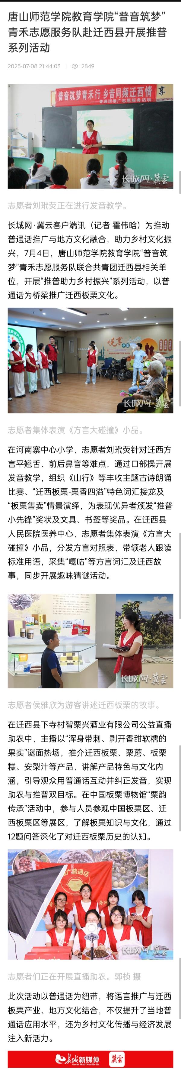 《冀云》——英国上市官网365“普音筑梦”青禾志愿服务队赴迁西县开展推普系列活动