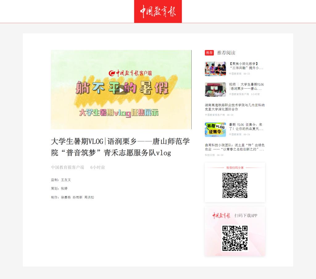《中国教育报》——老员工暑期VLOG|语润栗乡 英国上市官网365“普音筑梦”青禾志愿服务队vlog