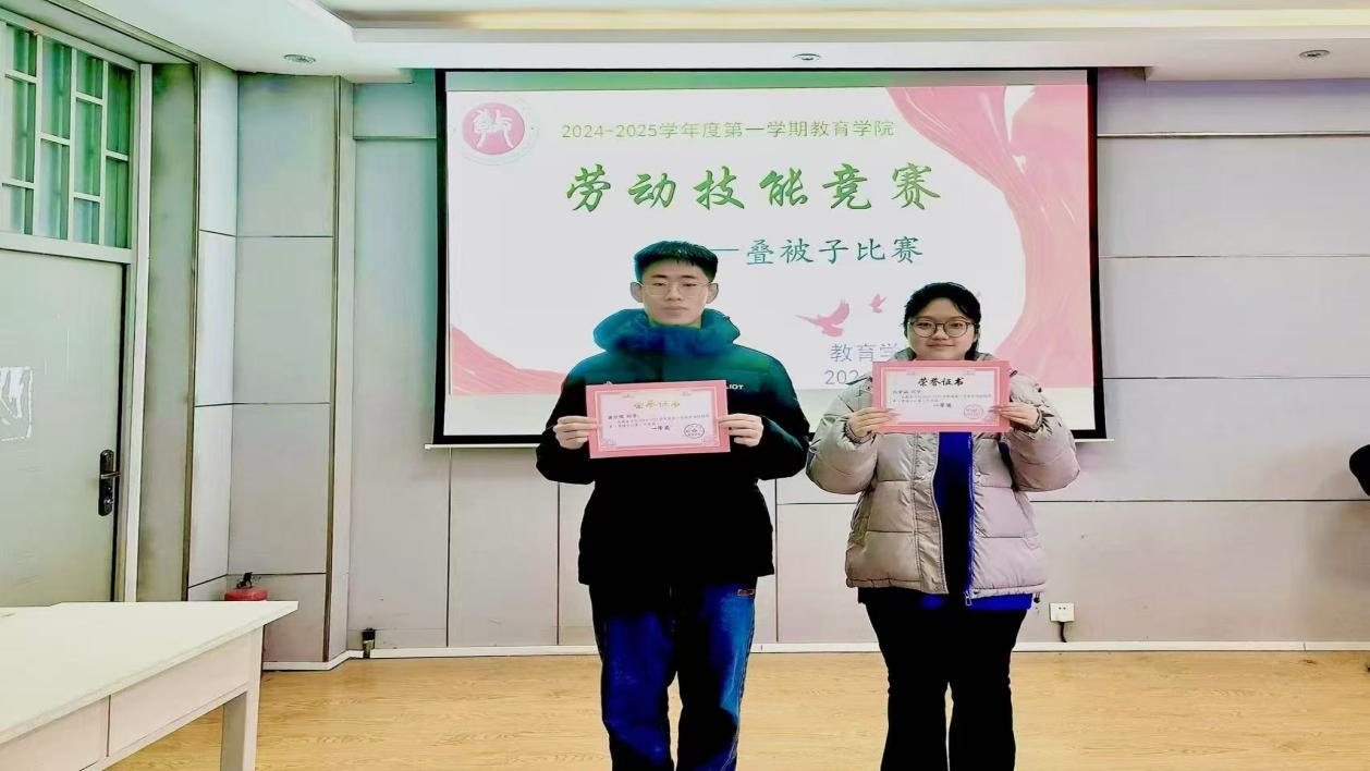 本次叠被子大赛以提升员工生活技能与素养、增强宿舍文化建设为中心。在比赛过程中,2023级小学教育1班的张紫涵动作娴熟、精神抖擞,快速而精准地铺平、折叠、压实、整形,使被子呈现出整齐美观的“豆腐块”形状。2023级小学教育2班的蒋宗儒一丝不苟,干净利落地把被子压平抹顺,不见一丝褶皱。其他参赛选手同样技巧熟练、速度快捷,他们的被子表面光滑平整,棱角分明,线条流畅。最终,张紫涵和蒋宗儒荣获英国上市官网365叠被子比赛一等奖,期待他们在英国上市官网365校级比赛中的更好表现。
