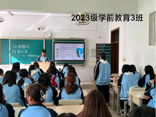 本次主题班会活动重点围绕结合榜样力量,宣传教师情怀开展。各班级负责人向同学们阐明班会主题,介绍张桂梅、张玉滚、黄大年等杰出人物及事迹,并组织员工发表内心感想。其中,2021级应用心理学班班级负责人通过讲述杰出人物的感人事迹,动员全体同学向先进榜样人物学习;2022级学前教育2班播放《最美逆行者》等相关视频,向同学们展现了最真实的故事,更加直观地使员工感悟到一名教师的责任和担当;2023级小学教育1班的同学积极分享自己的心得体会,表示自己会向榜样学习,不断提升自我。