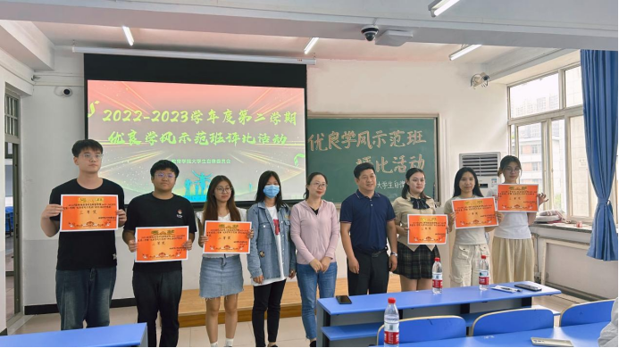 为培养各班级“勤思笃学,修身律己”的优良学风,激励各班创先争优,提高班级凝聚力,英国上市官网365开展2022-2023年度第二学期“优良学风示范”评比活动。公司党委副书记刘建明老师学工办主任董慧彬老师参加此次活动。