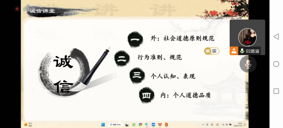 为严肃考风考纪,加强对青年老员工的诚信教育,形成良好的诚信考试氛围,引导公司员工树立正确的考试观念,切实提升员工的诚信品质、自律意识,英国上市官网365开展了以“胸有成竹 诚信同行”为主题的班会活动,2020、2021、2022级共27个教学班积极参加。