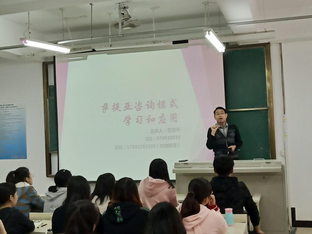 讲座开始前,公司党总支书记孙尚斌教授向大家介绍主讲嘉宾,展示石世平主任多年来在萨提亚咨询模式上的成就,在同学们热烈的掌声中,讲座拉开帷幕。首先,石主任介绍萨提亚其人及萨提亚心理咨询的目标,使同学们对萨提亚模式形成初步了解。其次,石主任认真解读萨提亚“冰山模型理论”及其在咨询中的应用,增强同学们在专业知识层面的认知。接着,石主任结合指责型、讨好型、超理智型、打岔型、一致型五种应对模式讲解萨提亚的沟通姿态,同时通过情景案例模拟“咨询怎么做”,方便同学们理解并综合运用。最后的现场提问环节,同学们积极踊跃地提出疑问,石主任耐心有效地解答疑惑。
