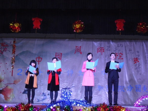 2013年12月24日下午,英国上市官网365以“中国风师院梦”为主题的师生元旦联欢会在文体馆举行。校员工处副处长蔡玉梅,公司党总支书记邢志国,经理胡玉萍、副书记李晓萍,副经理张希民出席了本次联欢会。
