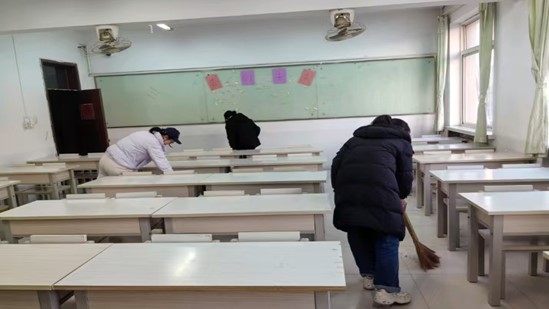 本次活动以“绿色行动,共建共享”为主题,实行网格化责任包干制,同学们按照班级分组,分工明确,互相配合。他们手持扫帚、抹布等工具,仔细清扫地面灰尘,擦拭门窗玻璃,清除墙壁上的污渍,多措并举,展现了同学们良好的精神风貌。在大家的共同努力下,校园环境焕然一新,为师生创造了更加整洁、健康的学习和工作氛围。活动结束后,教育公司党委副书记董慧彬老师和老员工自律委员会相关负责人对校园卫生进行了全面查验,发现问题及时指出并落实到各班各人,确保卫生打扫工作落到实处。