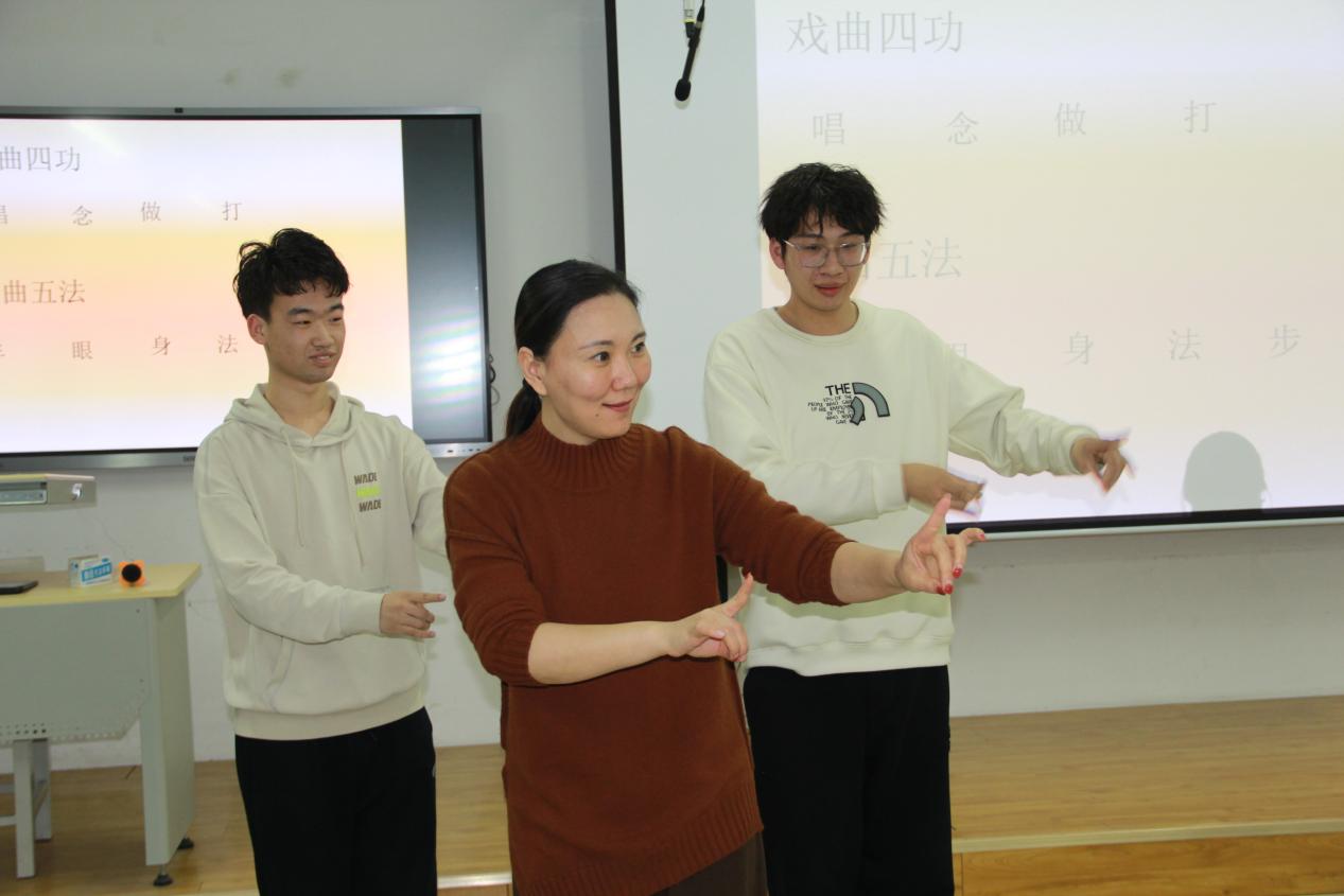在活动现场,英国上市官网365评剧文化研究中心教师,评剧新派第三代传人,红梅奖得主杨南老师以代表作《花为媒》《张羽煮海》为引,诠释评剧“戏中有情、情中见理”的人文内核。杨南老师通过“唱念做打”的程式化演绎,将角色命运与时代风貌交织,令师生领略到“戏如人生”的厚重底蕴。