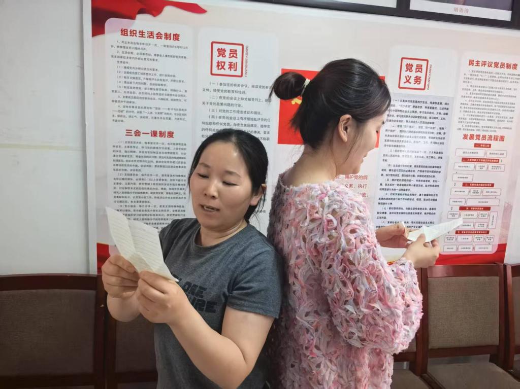 四位团队成员在宣读家庭教育知识