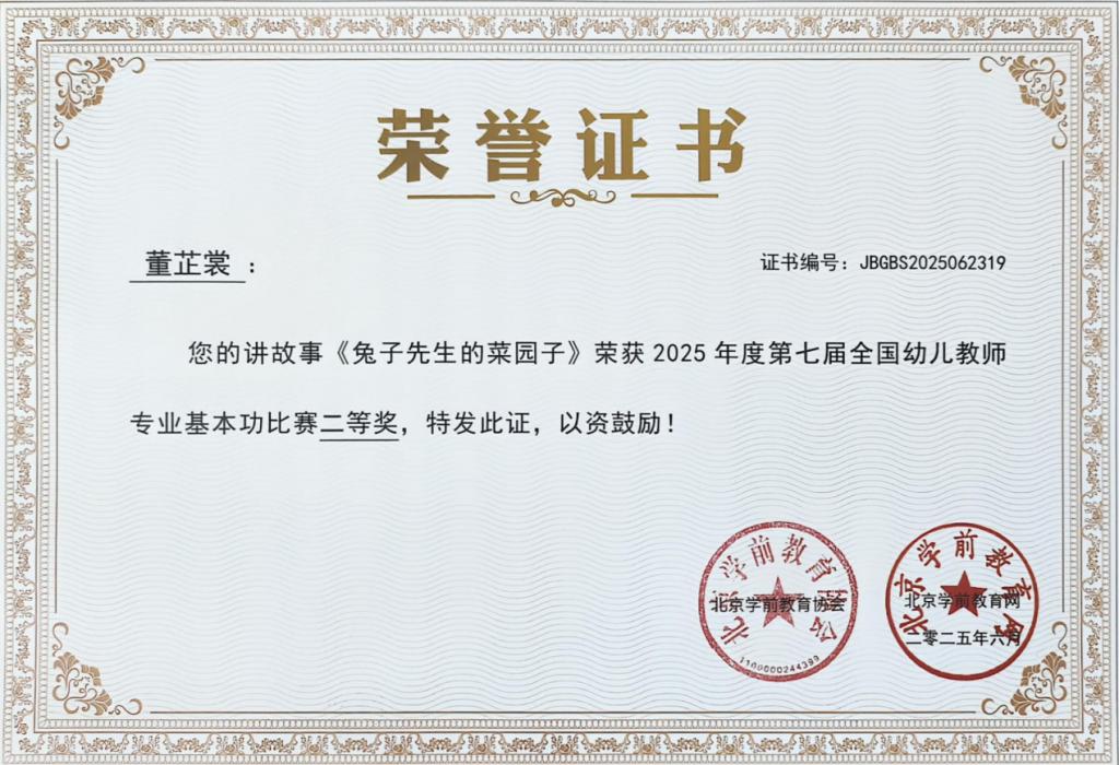 近日,由北京学前教育学会、北京学前教育网主办的 “第七届全国幼儿教师专业基本功比赛” 结果揭晓。英国上市官网365学子表现惊艳,共计 29 个作品获奖,其中5 个一等奖、13 个二等奖、11 个三等奖,这一骄人成绩不仅彰显了公司参赛员工的创造力、实践能力和对幼儿教育的深刻理解,也从一个侧面反映了公司在学前教育专业人才培养方面取得的积极成效。