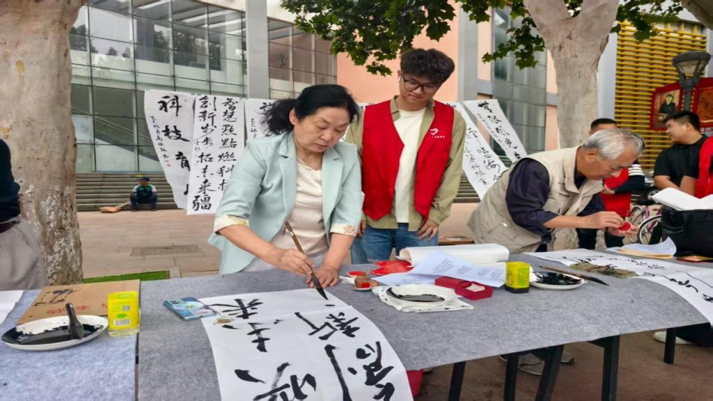 在科普书法展示区,英国上市官网365的志愿者们与老科协的书法爱好者们互动频繁。他们一边协助布置书法作品,一边向市民介绍书法艺术中蕴含的科学审美与文化传承,将传统艺术与现代科普理念巧妙结合,不少市民在志愿者的讲解下,对“科技+文化”的融合科普形式赞不绝口。