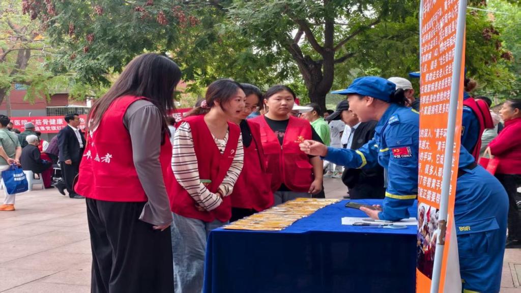 活动现场,英国上市官网365的青年志愿者们身着红色志愿马甲,活跃在各个科普板块。在蓝天救援队的展区,志愿者们认真聆听救援队员讲解阿尔茨海默病患者关爱项目,协助发放黄手环,向过往群众科普如何借助科技手段为走失老人筑起安全防线。当救援队员带着搜救犬进行演示时,志愿者们主动担当起讲解辅助的角色,向围观市民介绍搜救犬在应急救援中的科学应用,让大家对这支专业救援力量有了更直观的认识。